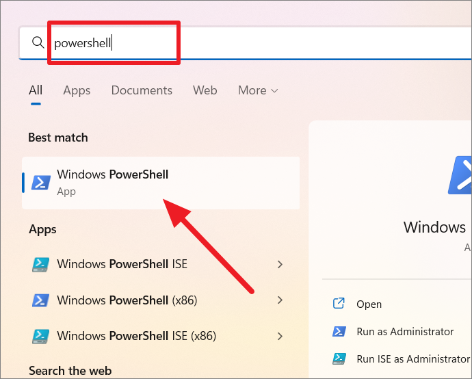 Step 1: Open the Start menu and search for PowerShell. Click on the Windows PowerShell app from the search results.