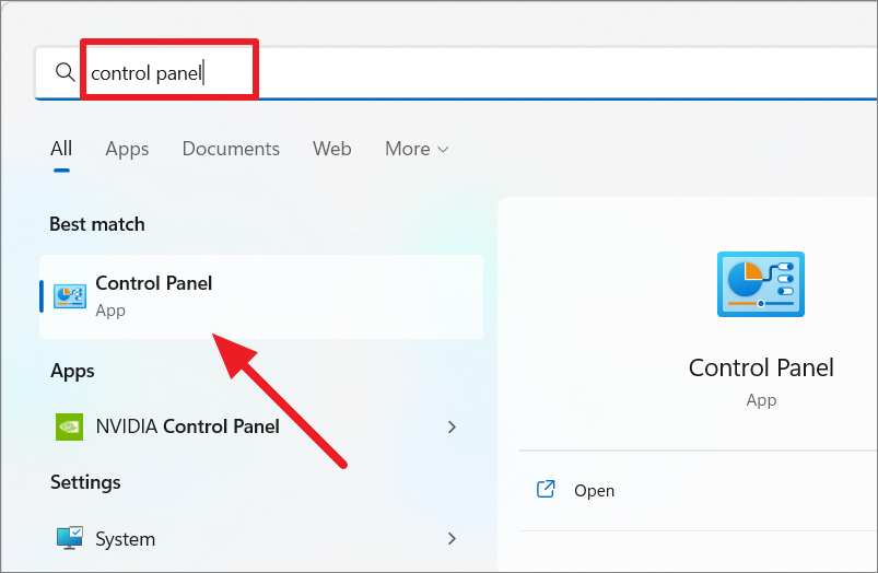 Step 1: Open the Control Panel by searching for Control Panel in the Start menu.