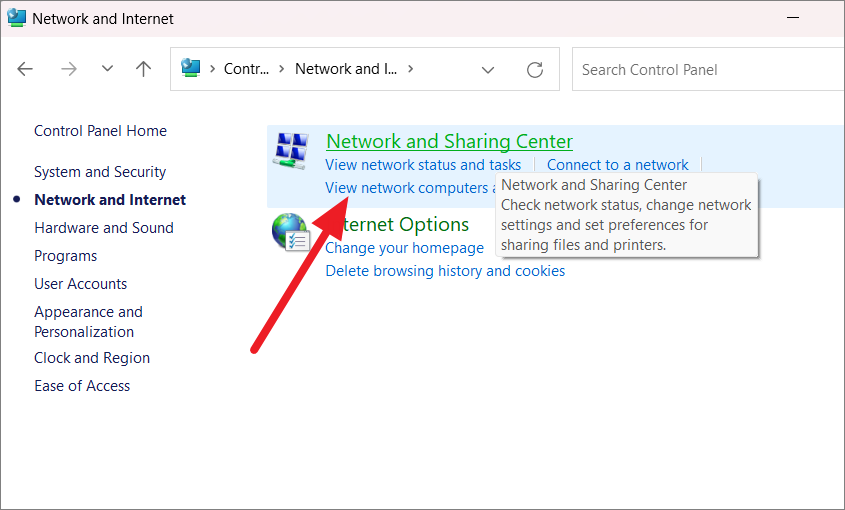 Step 3: Select Network and Sharing Center from the list of options.