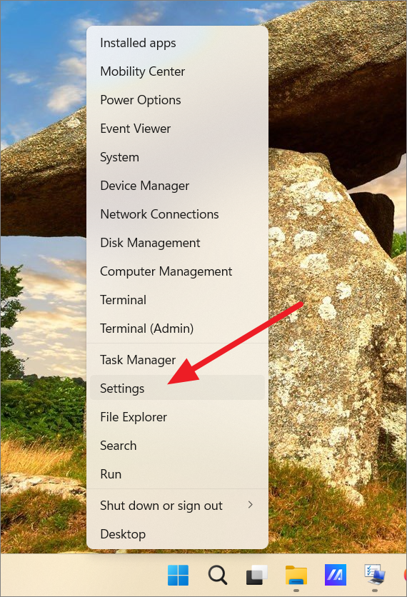 Step 1: Right-click the Start button and select Settings from the context menu.