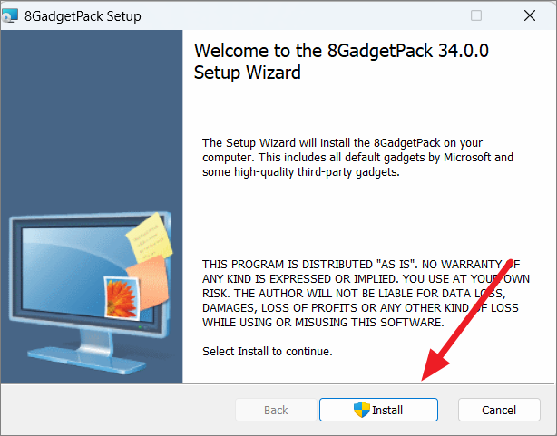 Step 1: Download the 8GadgetPack installer from the official website. Once downloaded, double-click the 8GadgetPackSetup file to begin the installation.