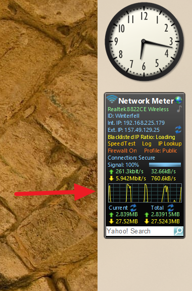 Step 8: Double-click on the Network Meter gadget to add it to your sidebar. The gadget will display your current upload and download speeds, as well as other network statistics.