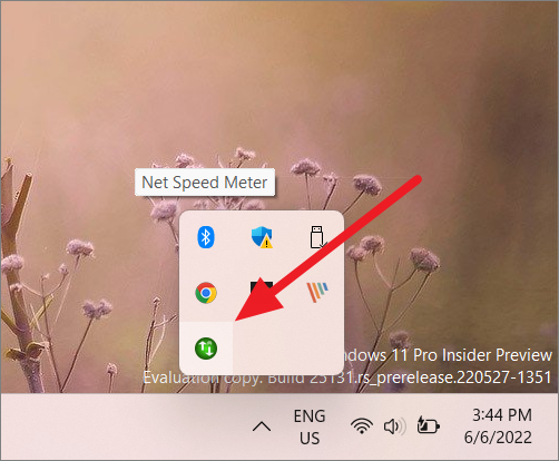 Step 6: You can move the speed meter to any location on your desktop by clicking and dragging it. To access it from the system tray, look for the app icon in the taskbar corner overflow.