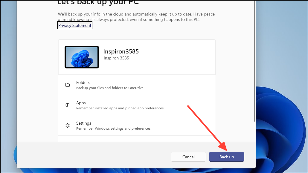 Step 8: Windows Backup will begin uploading your selected data to OneDrive.