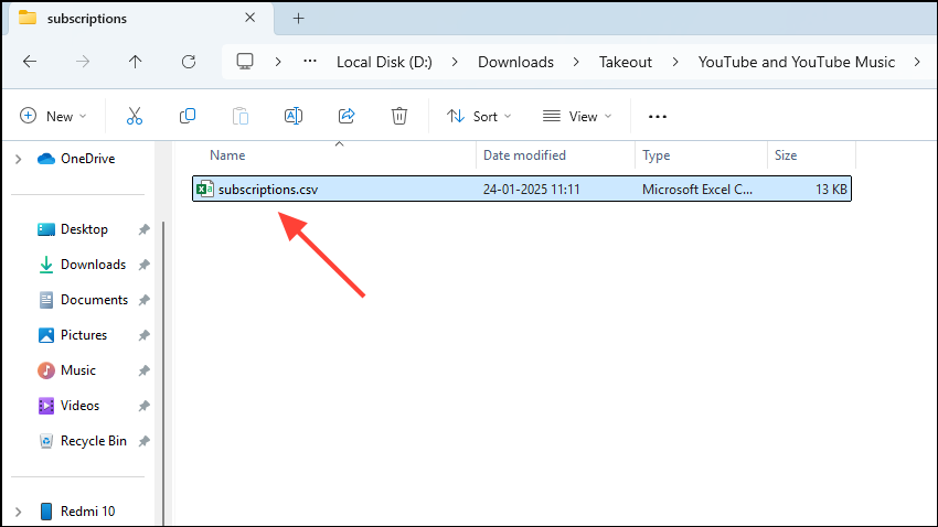 - You should now see a 'subscriptions.csv' file, which you can open in a compatible program like Microsoft Excel.