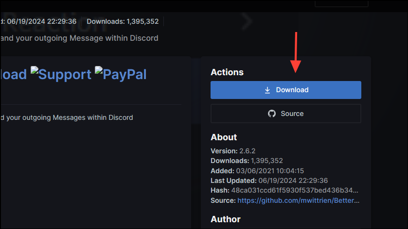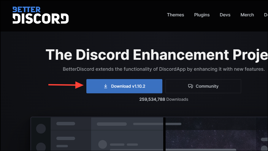 - Visit the BetterDiscord website using a web browser and click on the 'Download' button to download the installer to your system.