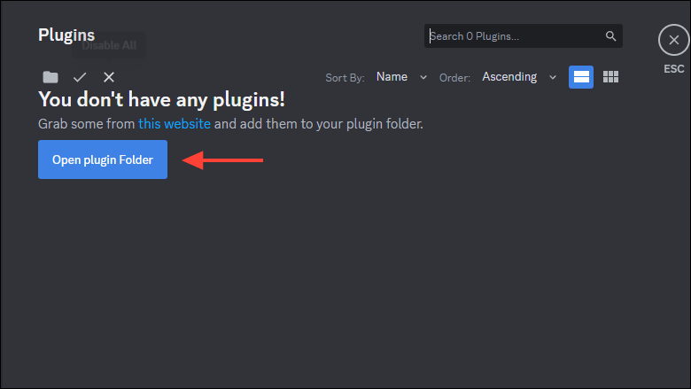 - Then click on 'Open plugins folder', which will open a new File Explorer window.