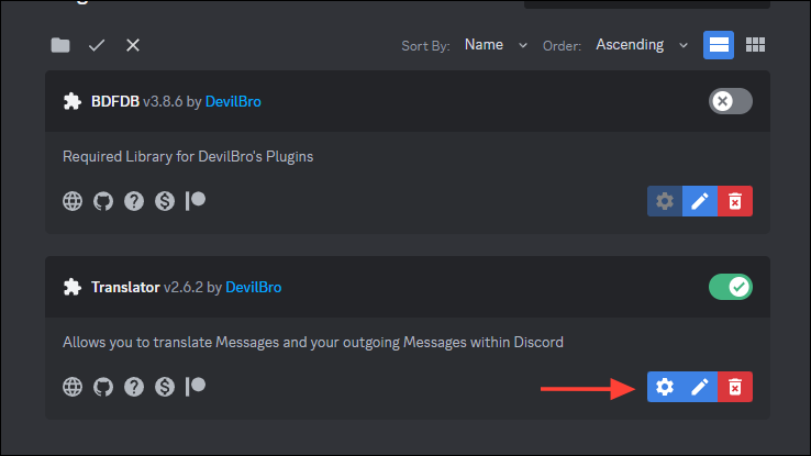 - Now, go back to the Plugins section in Discord and click on the Translator toggle to turn it on.
