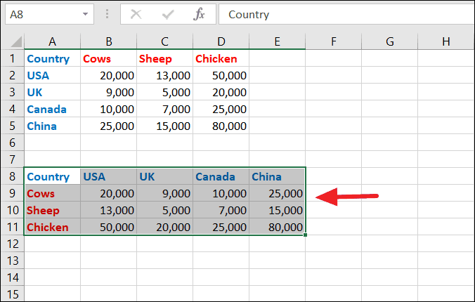 Step 5: The data will now appear in the new location with the rows and columns swapped. The original formatting, including any colors, fonts, and cell borders, will be preserved.