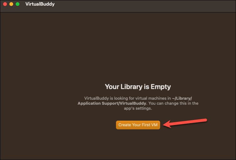VirtualBuddy will open. Since your library will be empty at this time, click ‘Create your First VM’ to continue.