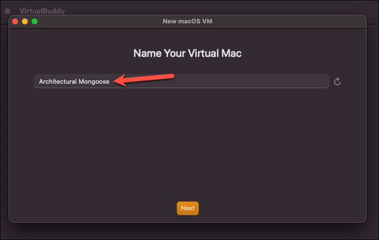 Enter the name of your virtual mac on the next screen and click ‘Next’.