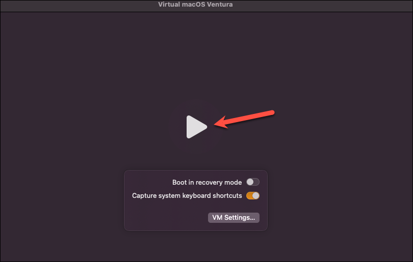 Then, click the ‘Play’ button to initialize it. VirtualBuddy will install the macOS with your specified disk size.