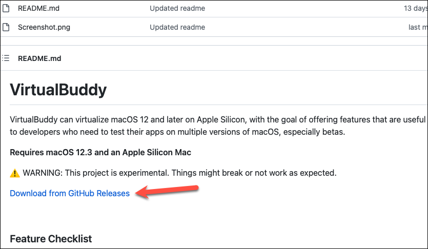 To install VirtualBuddy, head over to its link on GitHub. Scroll down and click the ‘Download from GitHub Releases’ link.