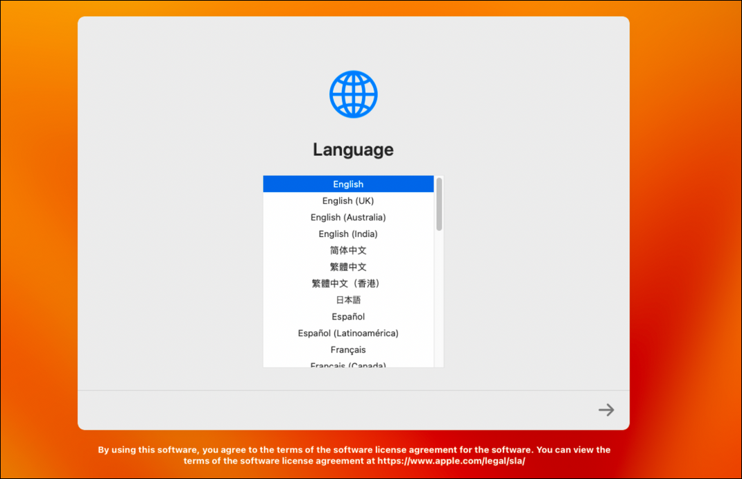 Once it completes, you’ll be greeted with the screen that appears when starting up a new Mac.