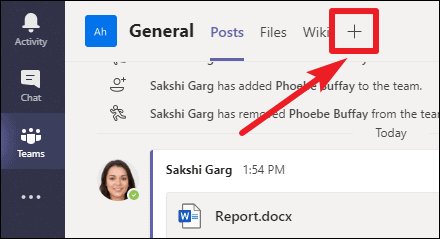Step 1: Navigate to the channel where you want to add the app. On the top menu, click the '+' icon next to the existing tabs.