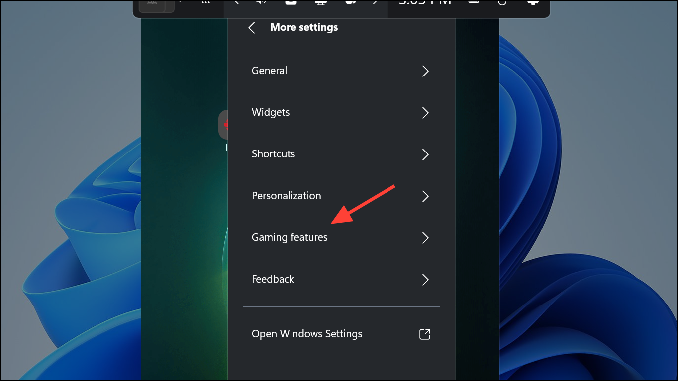 Step 3: Select Gaming features from the menu.
