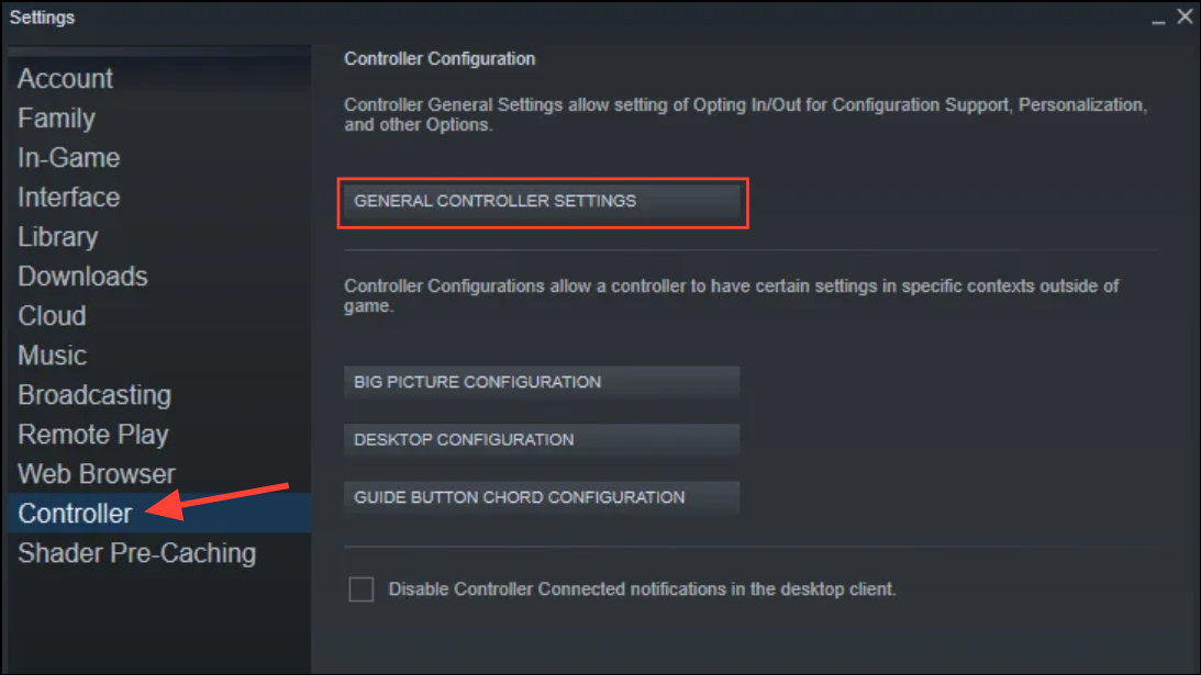 Step 2: Navigate to Steam > Settings > Controller. In the Controller settings, look for the option labeled “General Controller Settings.” This area allows you to manage how Steam interprets your connected controllers.
