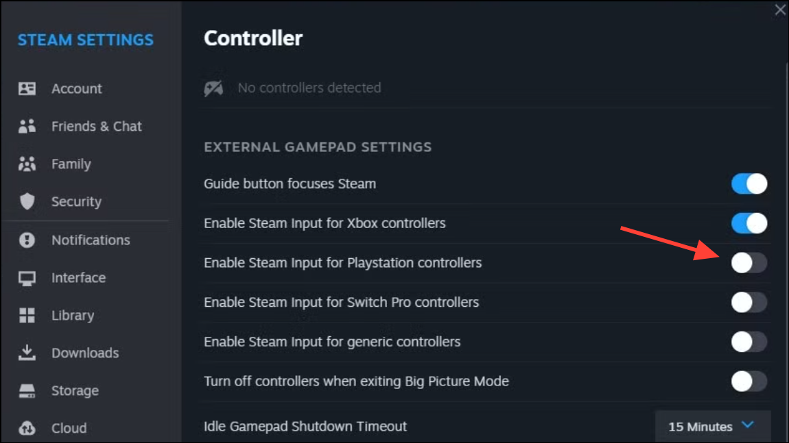 Step 7: If you want to further customize or ensure haptics are off, go to Steam > Settings > Controller > Desktop Configuration and select your controller. Look for any settings related to “Trigger Haptics” or “Trigger Effect Intensity” and set them to “Off” if available.