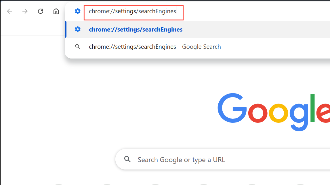 Step 1: Open Chrome and enter chrome://settings/searchEngines in the address bar. This brings you directly to the search engine management page.