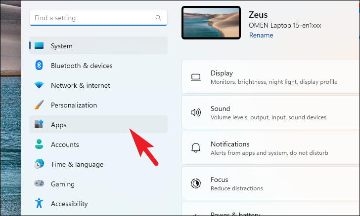 Step 2: In the Settings window, select the 'Apps' tab from the left sidebar.