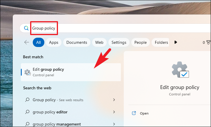 Step 1: Open the Group Policy Editor by clicking on the Start Menu and typing Edit group policy. Select 'Edit group policy' from the search results.