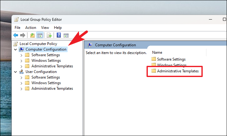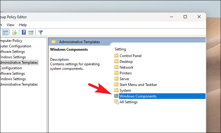 Step 2: In the left pane, navigate to 'Computer Configuration' > 'Administrative Templates' > 'Windows Components'.