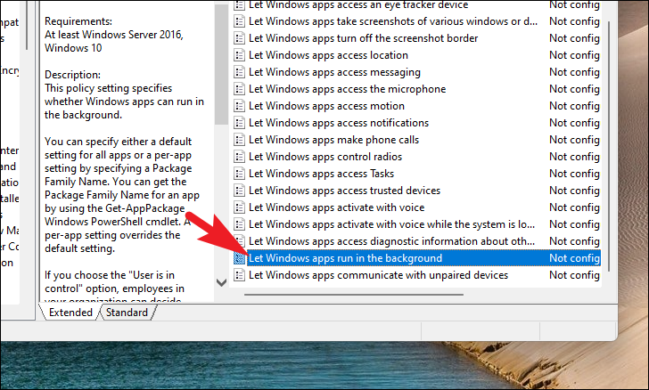 Step 4: In the right pane, double-click on 'Let Windows apps run in the background'.