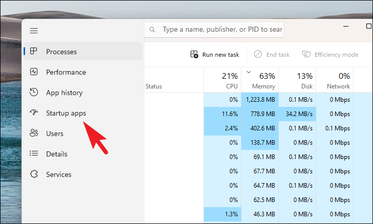 Step 2: In Task Manager, select the 'Startup apps' tab from the left sidebar.