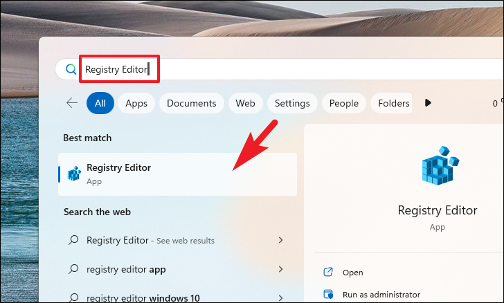 Step 1: Open the Registry Editor by clicking on the Start Menu and typing Registry Editor. Select the 'Registry Editor' application from the search results.