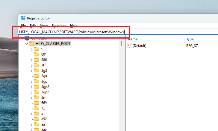 Step 2: In the Registry Editor, navigate to the following path by copying and pasting it into the address bar and pressing Enter:
