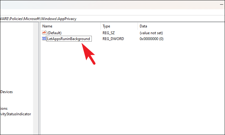 Step 5: Rename the new value to LetAppsRunInBackground and double-click on it to open its properties.