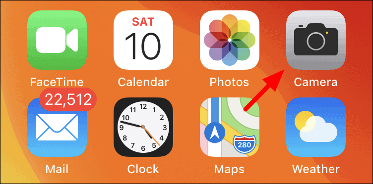 To turn off the camera sound, tap on the camera icon on the iPhone home screen.