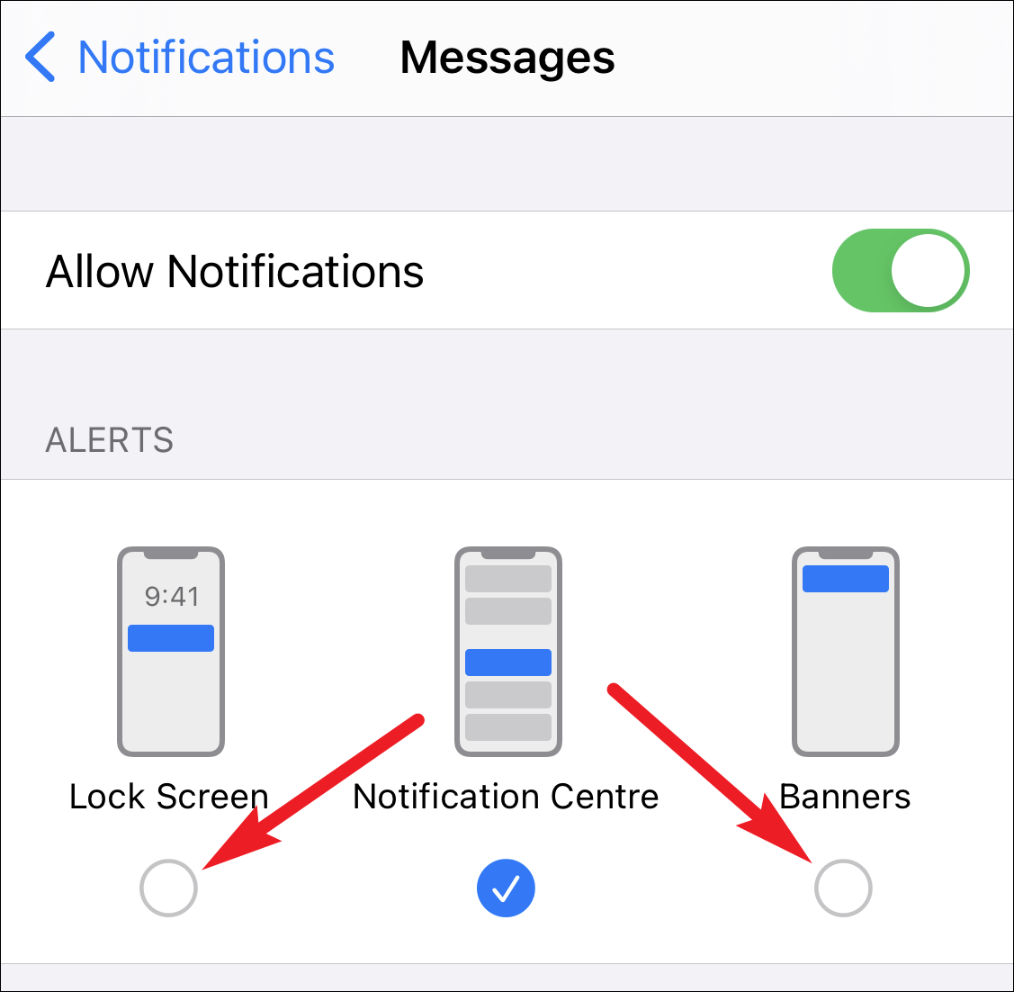 By adjusting these settings, iMessage notifications will once again appear prominently, with sounds, lock screen alerts, and app icon badges, ensuring you stay updated with all your important messages.