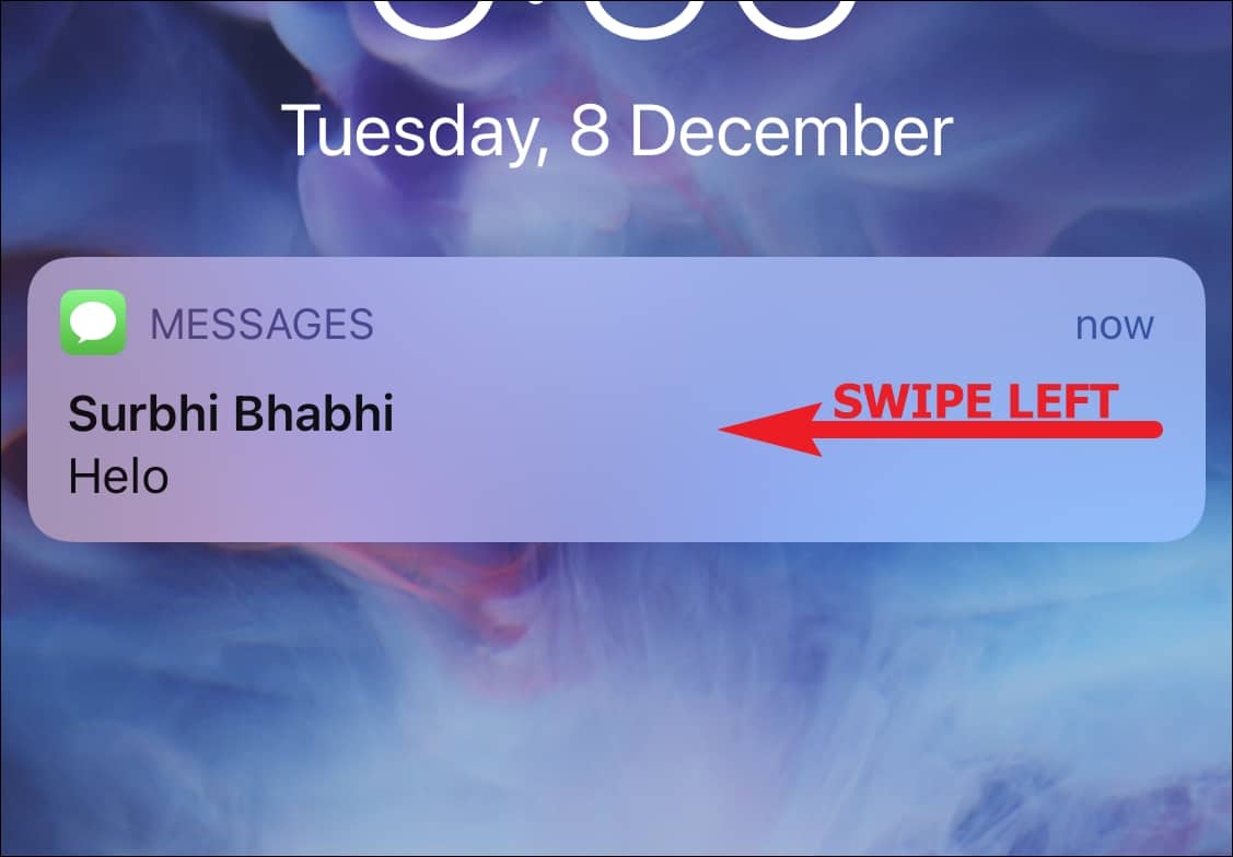 Step 2: Swipe left on the iMessage notification to reveal additional options.