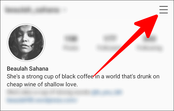 Then, tap the hamburger icon (three horizontal lines) on the topmost right corner on your profile page.