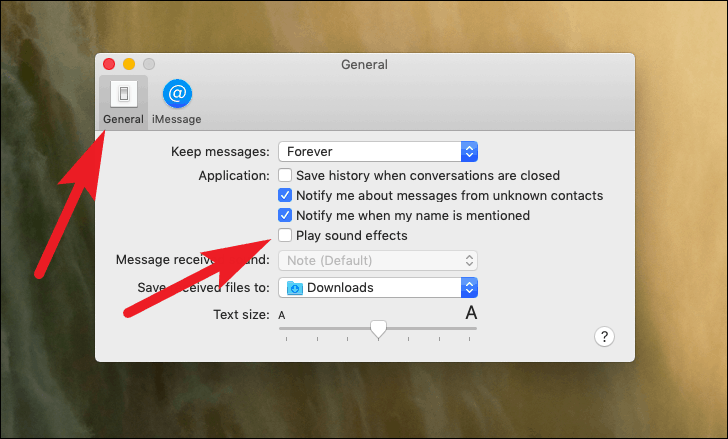 Step 3: In the Preferences window, go to the General tab. Uncheck the box next to Play sound effects under the "Application" section.
