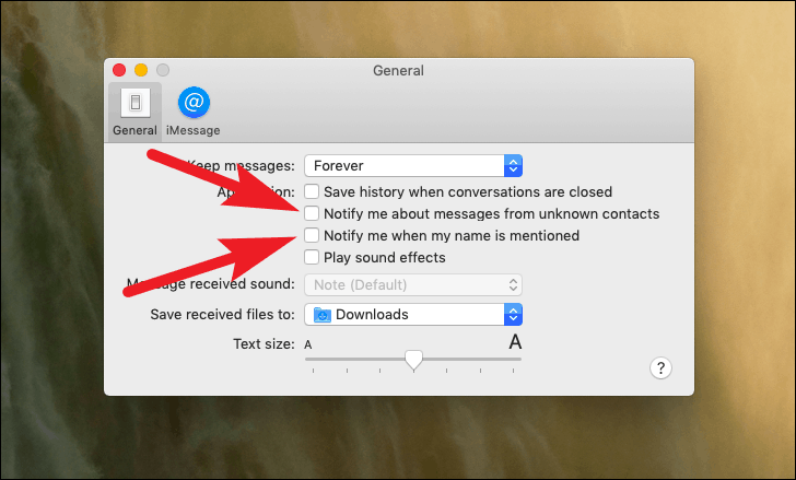 Step 4: To prevent notifications when someone mentions your name, uncheck the box for Notify me when my name is mentioned. If you don't want to be notified about messages from unknown contacts, uncheck Notify me about messages from unknown contacts as well.