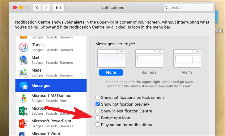 Step 5: If you prefer not to see the red badge icon on the Messages app when you have unread messages, uncheck the box next to Badge app icon.