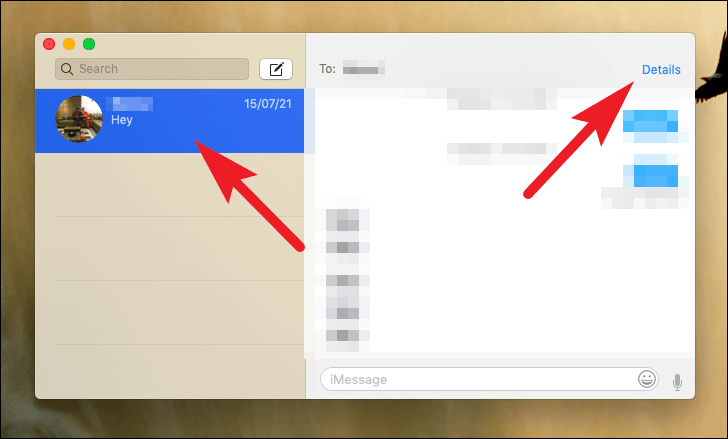 Step 3: Click on Details in the upper-right corner of the Messages window.