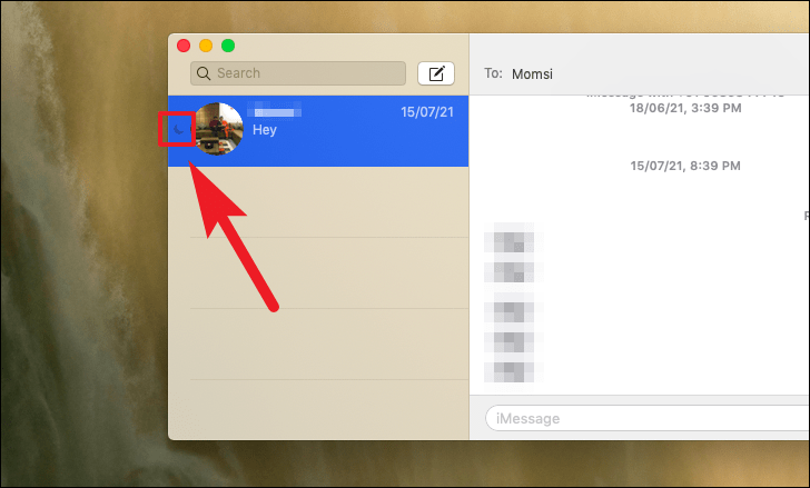 You’ll notice a crescent moon icon next to the conversation, indicating that Do Not Disturb is enabled for that contact.