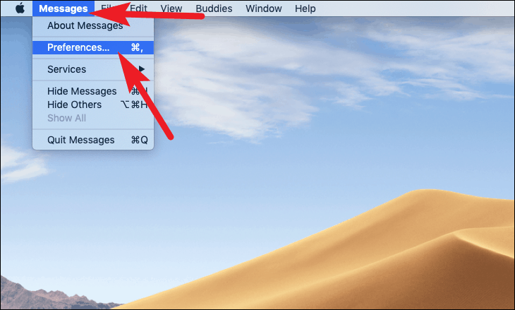 Now, select the ‘Messages’ from the toolbar on the upper right section of the screen. Then, click on the ‘Preferences’ option.