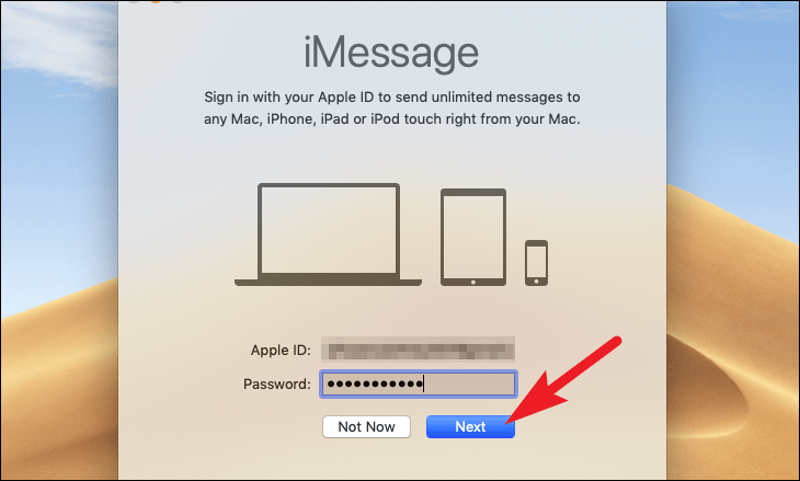 Now, since your iMessage will be disabled on the device, you will be greeted with a sign-in screen. Click on the ‘Next’ button after entering your Apple ID credentials.