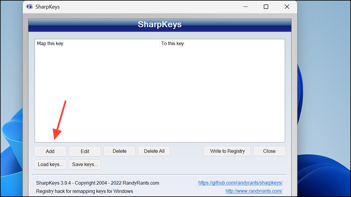 Step 1: Download and install SharpKeys from its official website or the Microsoft Store. SharpKeys is a free, trusted utility for remapping or disabling keys on your keyboard. It works by writing changes directly to the Windows registry, so no background process is required after configuration.