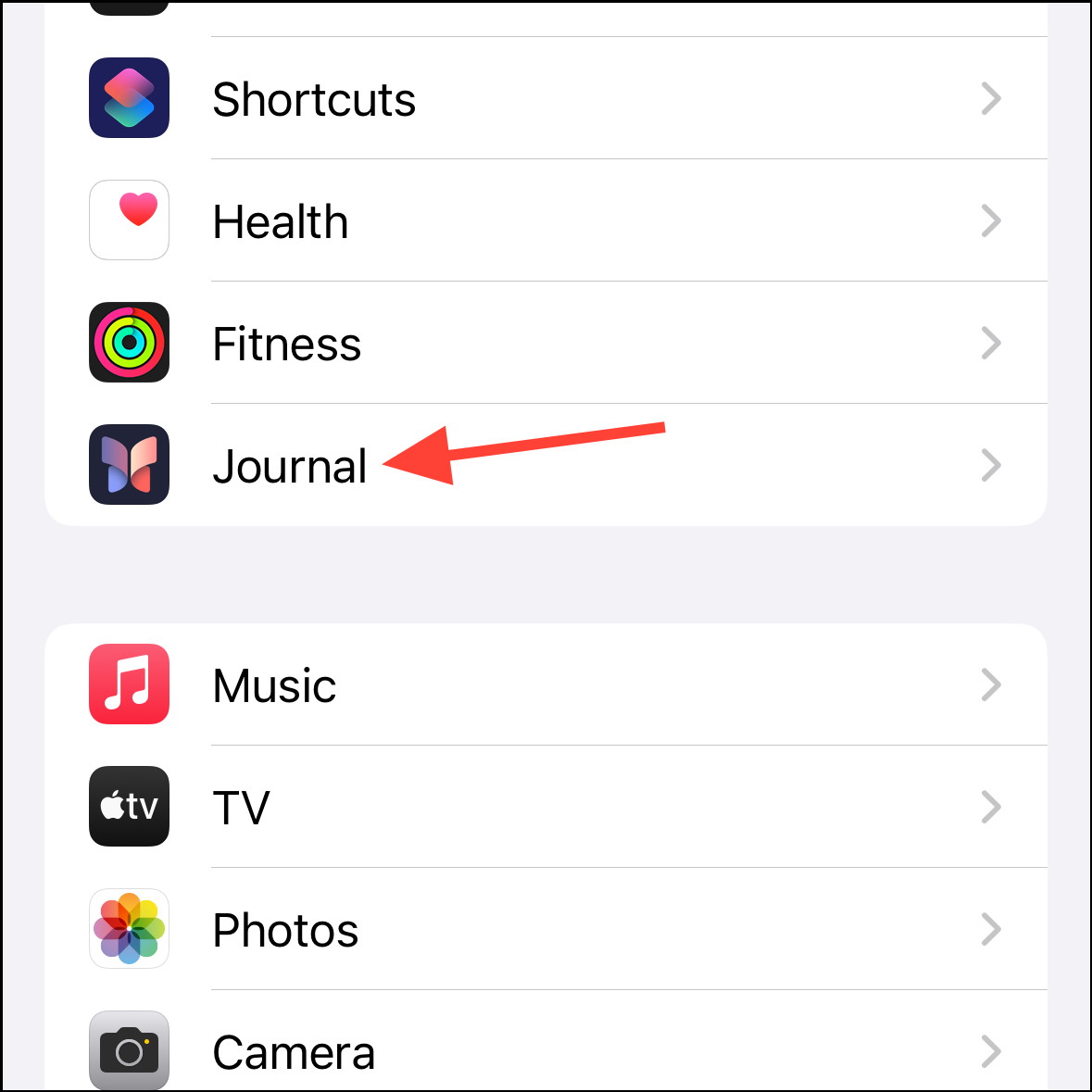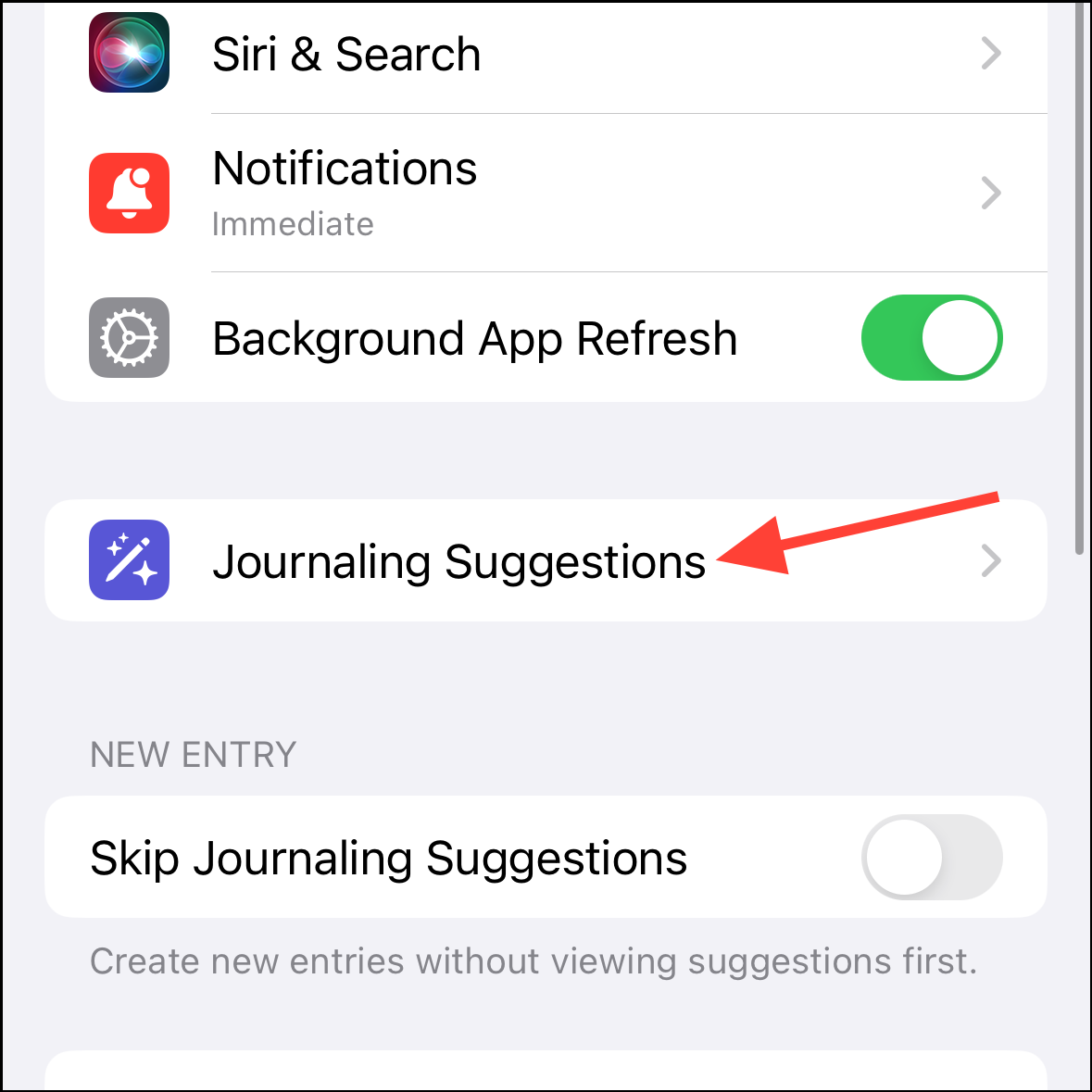 - Then, tap the option for 'Journaling Suggestions'.