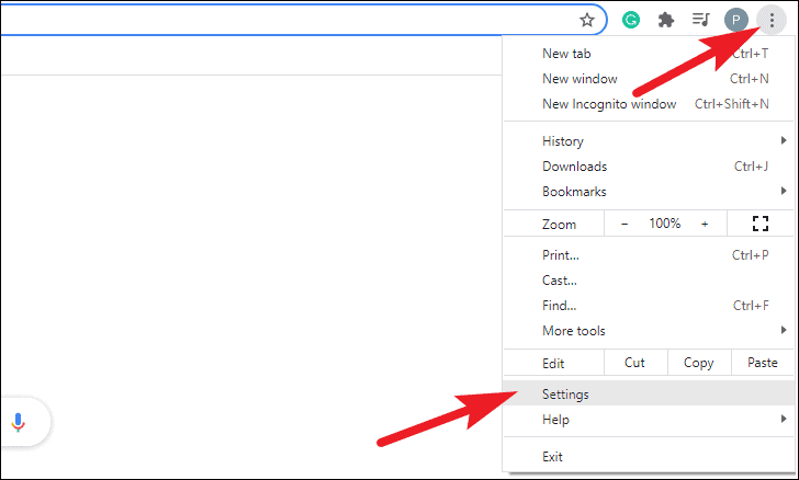 Next, click on the kebab menu (three vertical dots) present on the top right section of the Chrome window. Then, click on the ‘Settings’ option from the overlay menu.