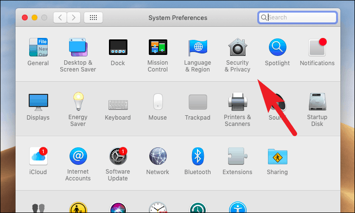 Next, click on the ‘Security & Privacy’ option present on the ‘System Preferences’ window.