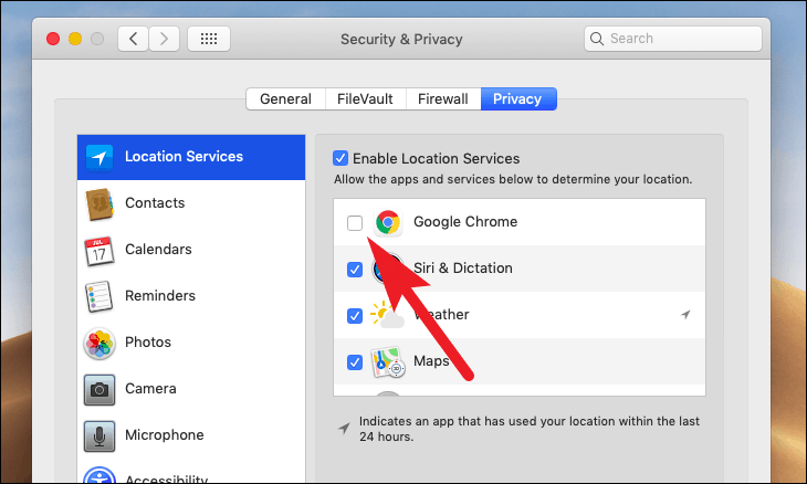 Well, you can always disable the location settings on Chrome on your macOS device in the same way shown in the previous section. However, macOS provides an extra layer of protection where you can even disable Chrome from accessing your location for being on the safer side.