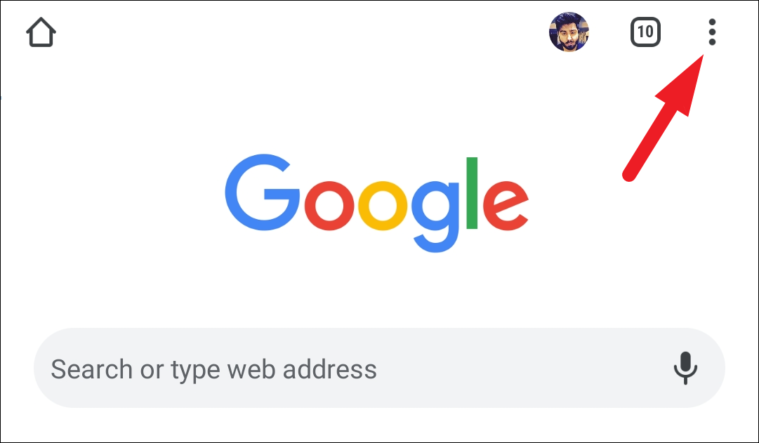 Next, tap on the kebab menu (three vertical dots) present on the top right corner of the Chrome window.