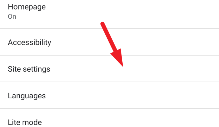 After that, scroll down and locate the ‘Site settings’ tab on the ‘Settings’ page and tap on it to enter.