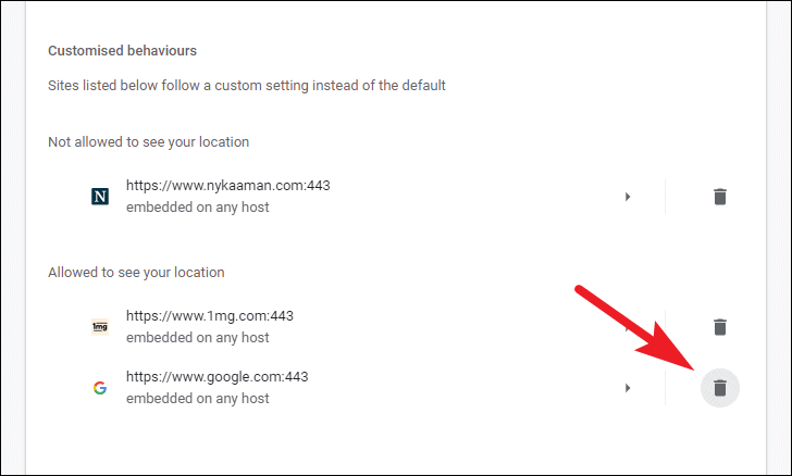 Now, in case you have some websites that are already allowed to access your location; you will be able to see them under the ‘Allowed to see your location’ section.